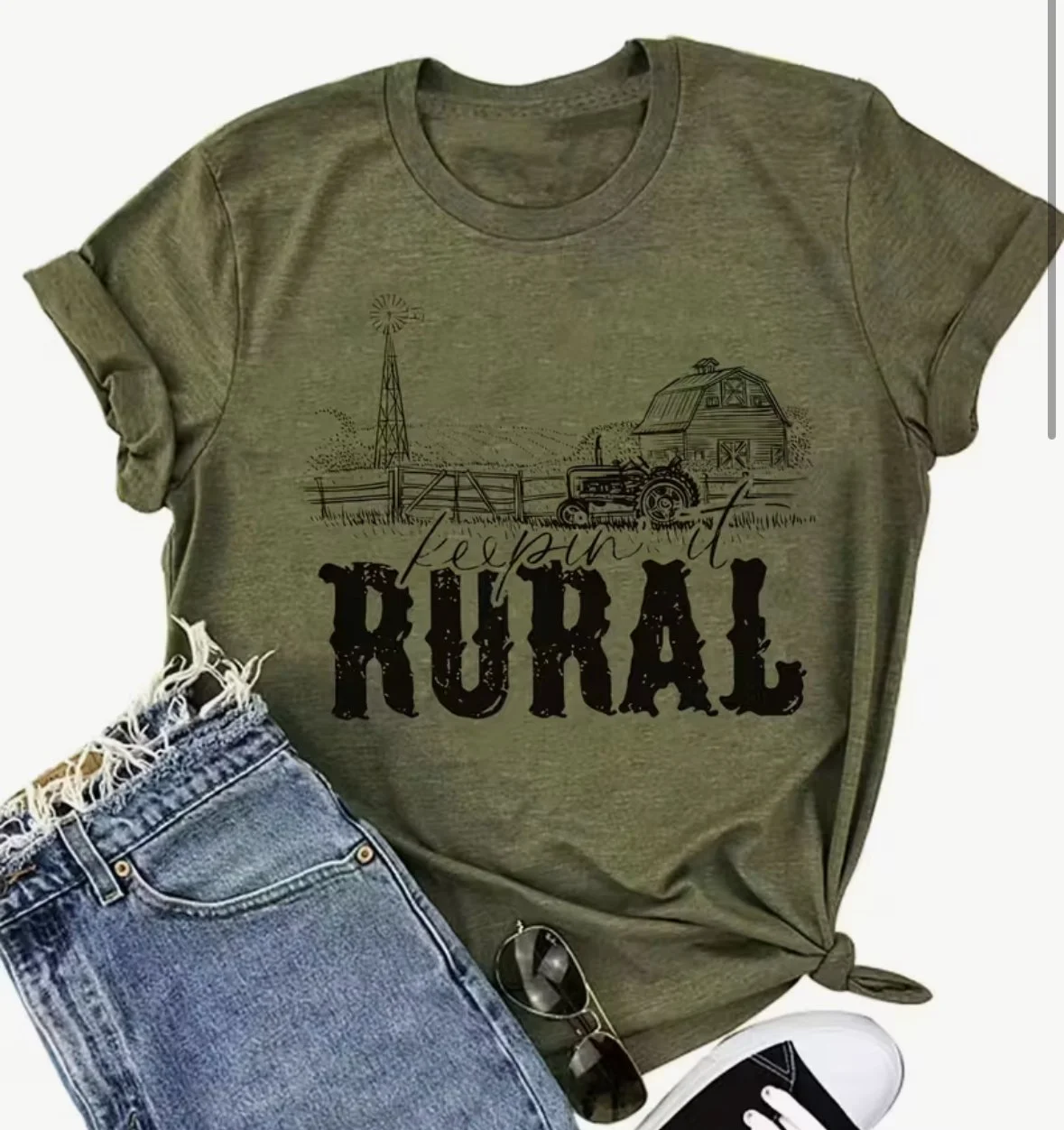 Welcome to The Shop › Keep It Rural T-Shirt Image 1 of 1 Keep It Rural T-Shirt $19.95 Gorgeous arm green T-shirt with rural image of a quant farm! So so soft! 60% Polyester, 35% Rayon, & 5% Spandex Size: Small Medium Large Extra Large Quantity: Add To Cart Added! Gorgeous arm green T-shirt with rural image of a quant farm! So so soft! 60% Polyester, 35% Rayon, & 5% Spandex