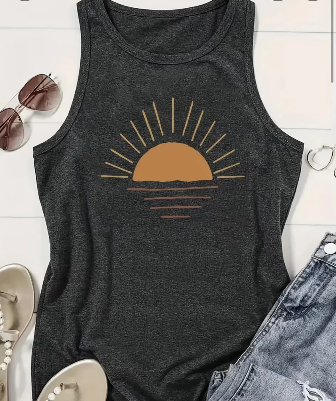 Welcome to The Shop › Sunrise Tank Top Image 1 of 2 Image 2 of 2 Sunrise Tank Top $17.95 Beautiful, soft sunrise tank! 60% Polyester, 35% Rayon, & 5% Spandex Size: Small Medium Large Extra Large Quantity: Add To Cart Added! Beautiful, soft sunrise tank! 60% Polyester, 35% Rayon, & 5% Spandex